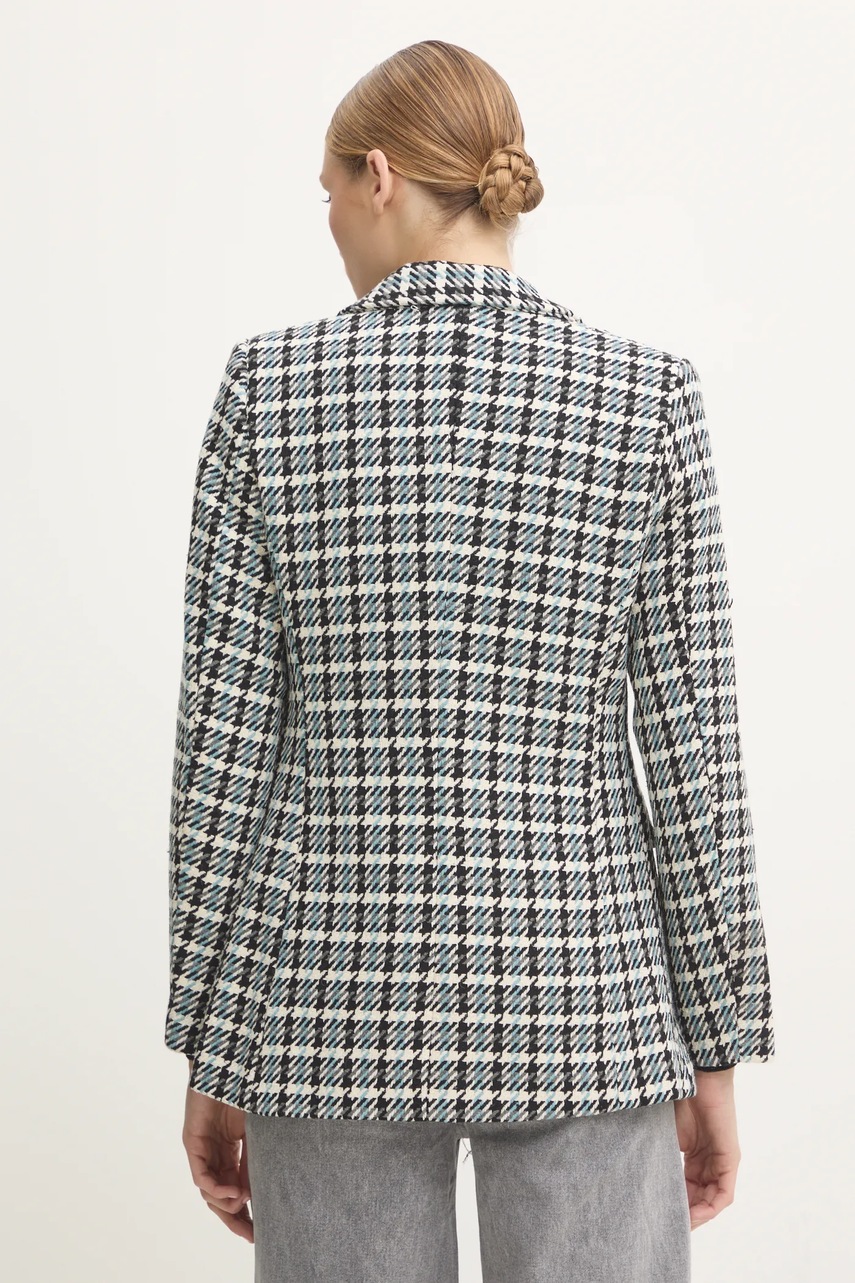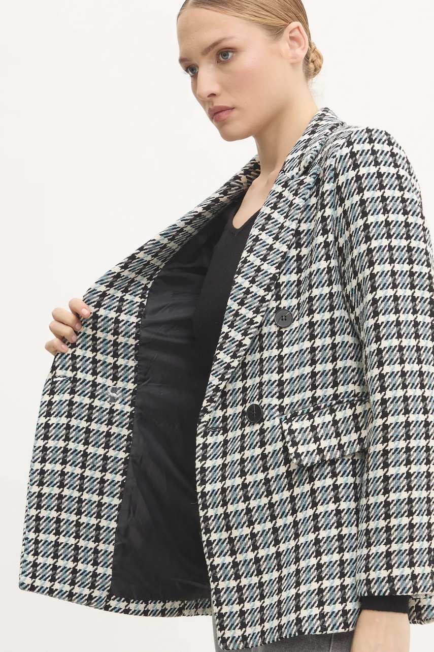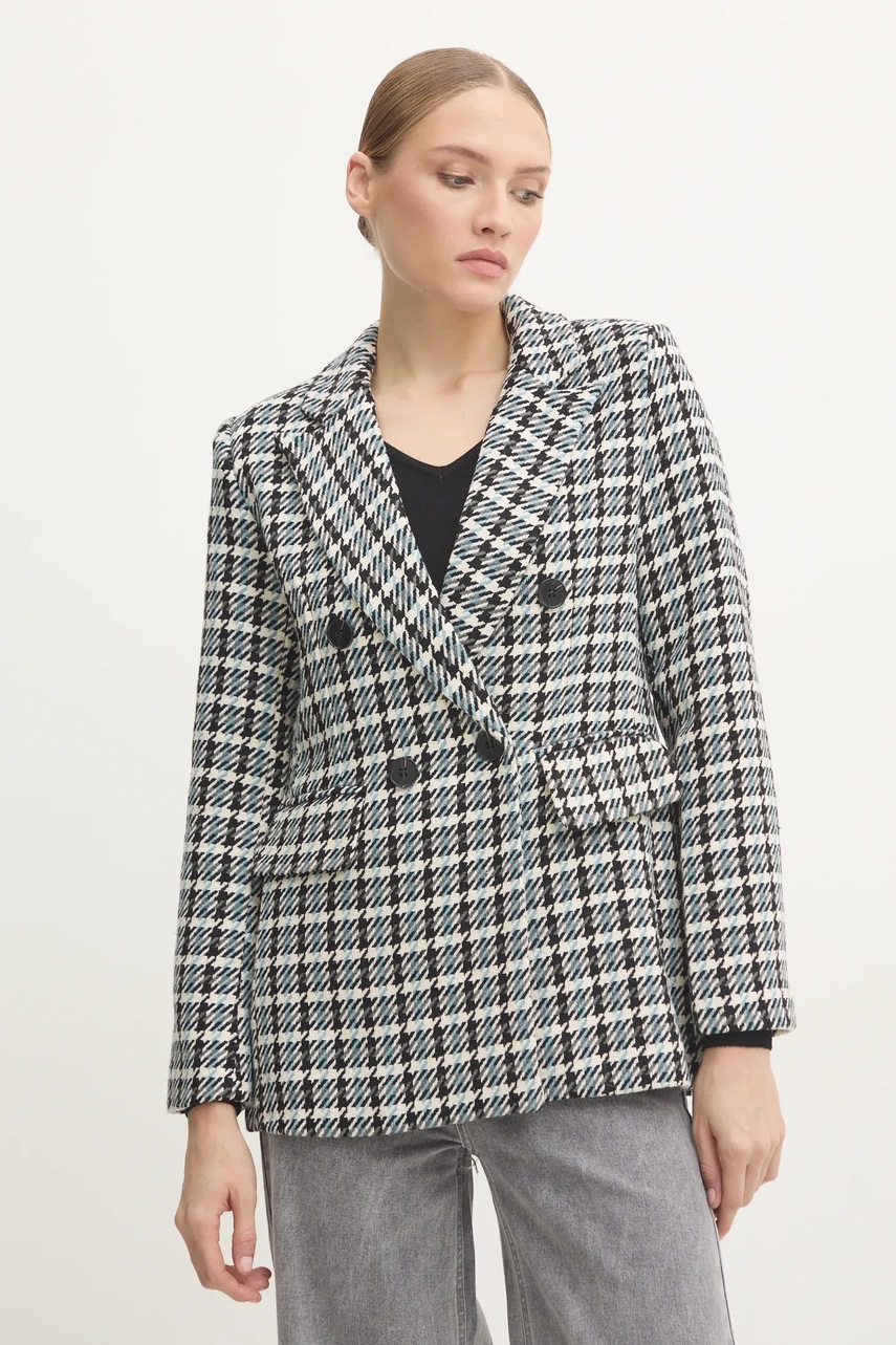Answear Lab marynarka z wełną kolor niebieski dwurzędowa wzorzysta