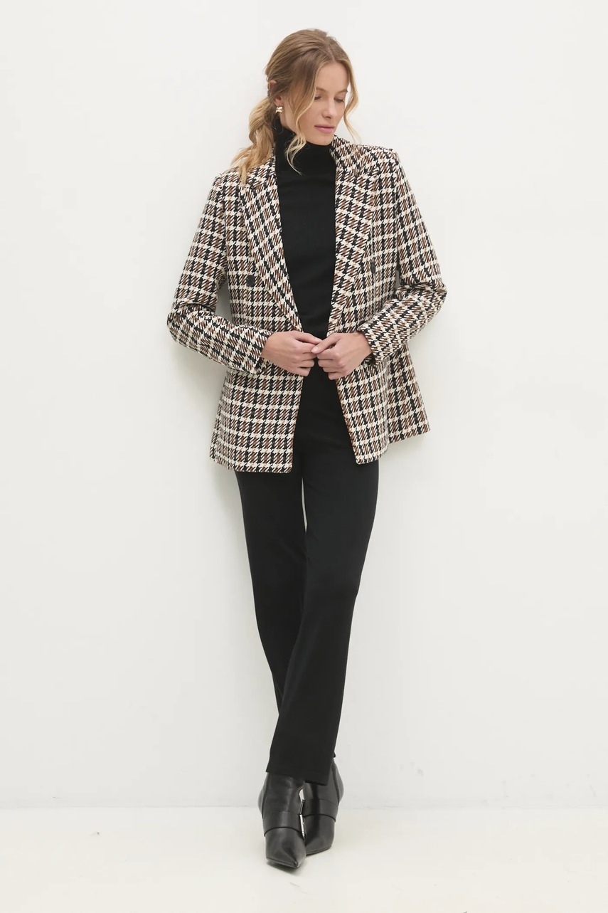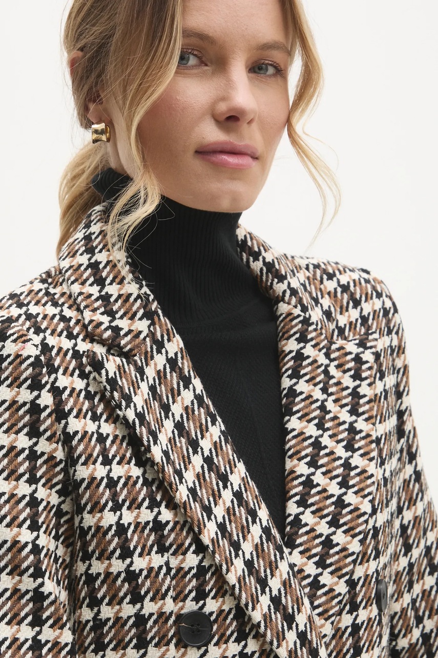 Answear Lab marynarka z wełną kolor brązowy dwurzędowa wzorzysta