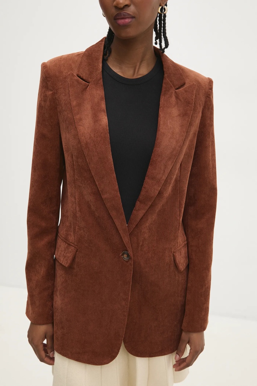 Answear Lab marynarka kolor brązowy jednorzędowa gładka