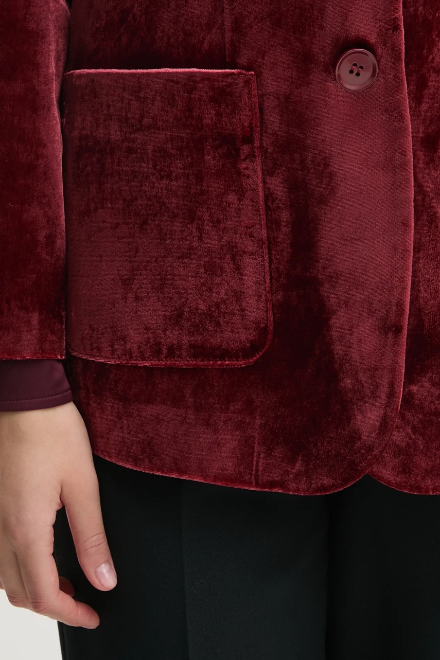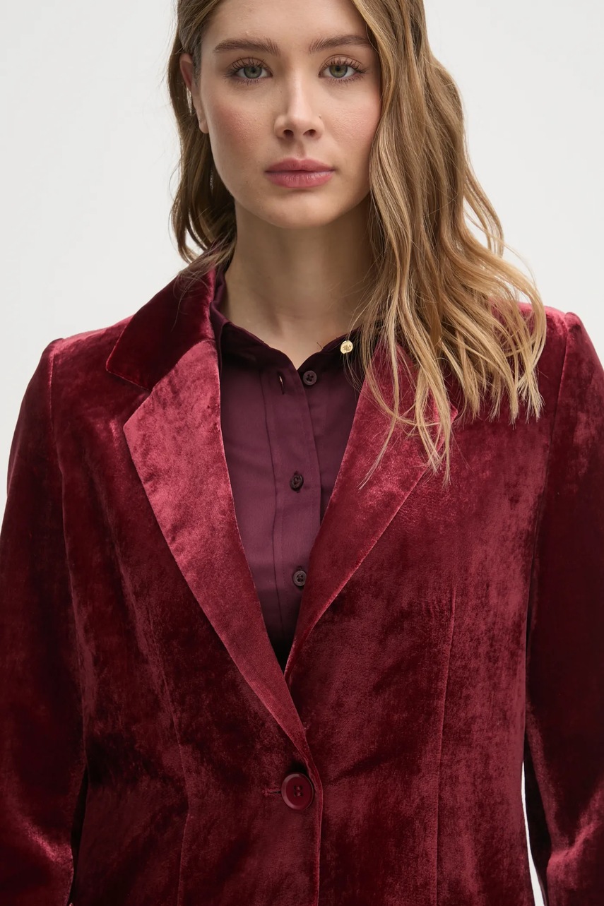 Sisley marynarka welurowa kolor bordowy jednorzędowa gładka 21EULW02M