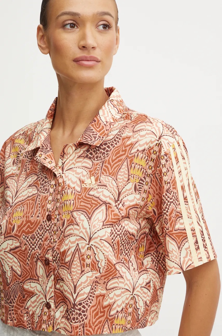adidas koszula x Farm Rio damska kolor pomarańczowy relaxed z kołnierzykiem klasycznym IW5185