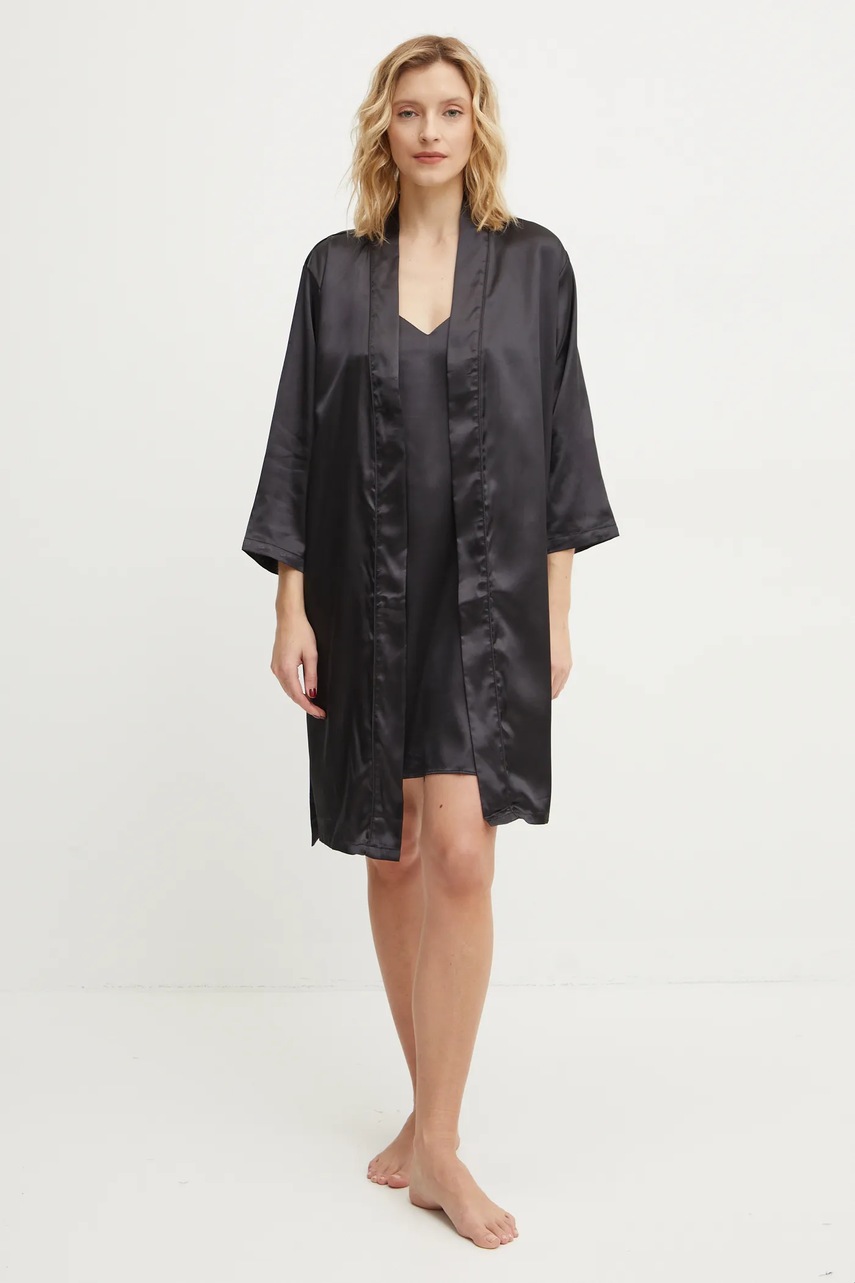 Answear Lab koszula nocna i szlafrok damska kolor czarny satynowa