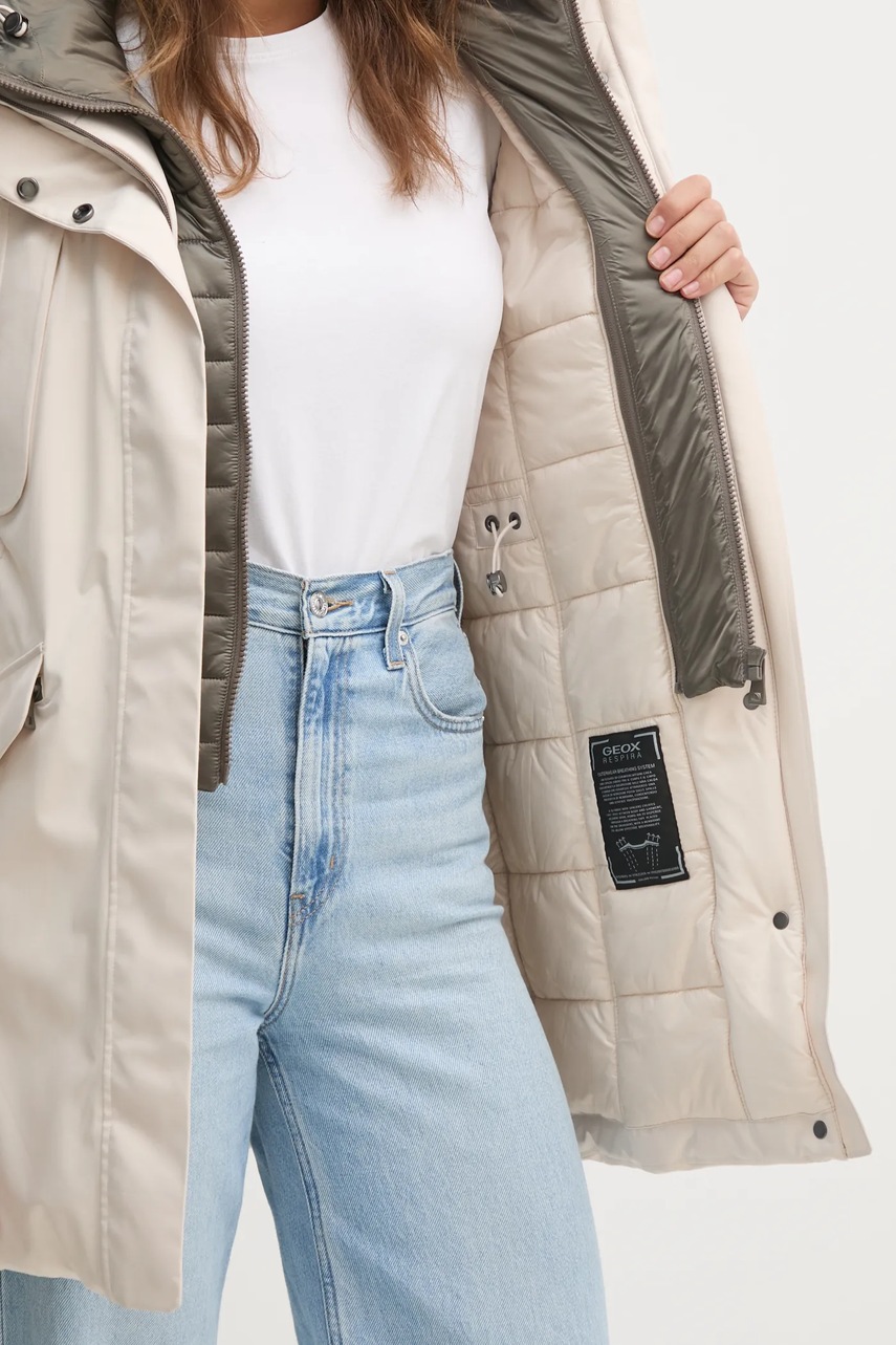 Geox kurtka damska kolor beżowy zimowa W4621B-T3149-F1723