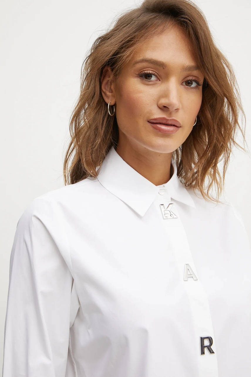 Karl Lagerfeld koszula bawełniana damska kolor biały regular z kołnierzykiem klasycznym A1W11026