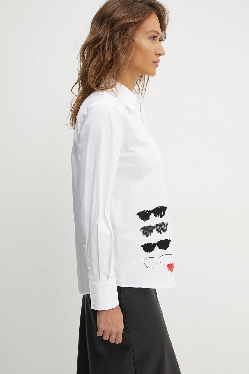 Karl Lagerfeld koszula bawełniana damska kolor biały relaxed z kołnierzykiem klasycznym A1W11035