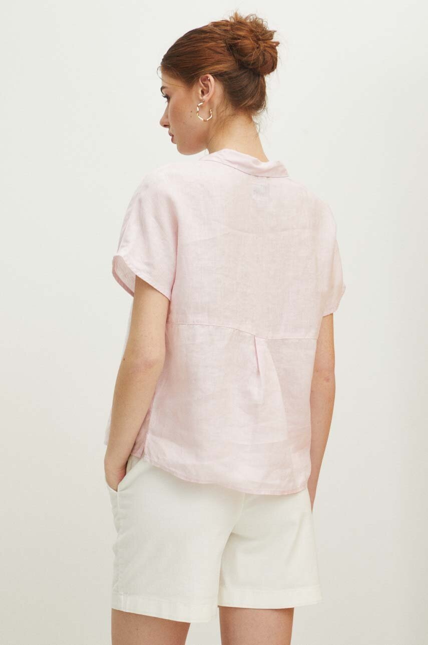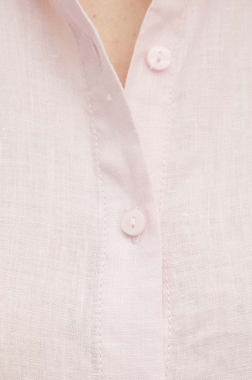 Medicine koszula lniana damska kolor różowy regular z kołnierzykiem klasycznym