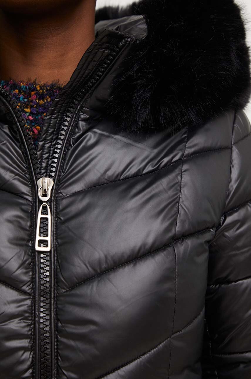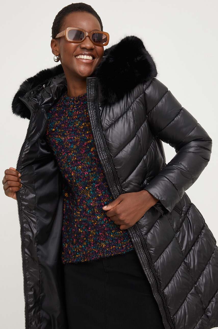 - Podwyższony kołnierz i nieodpinany kaptur gwarantują dodatkową ochronę przed chłodem.