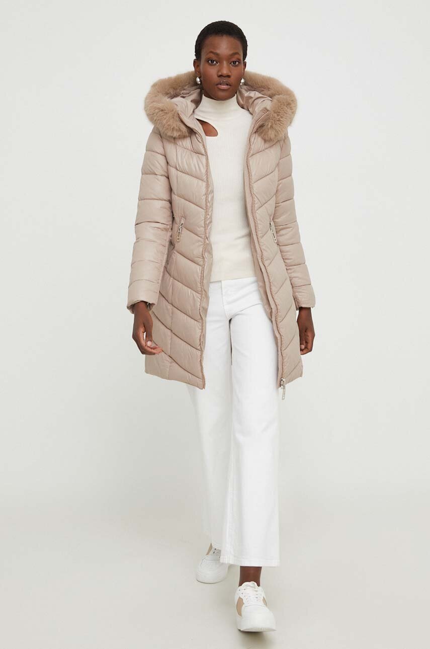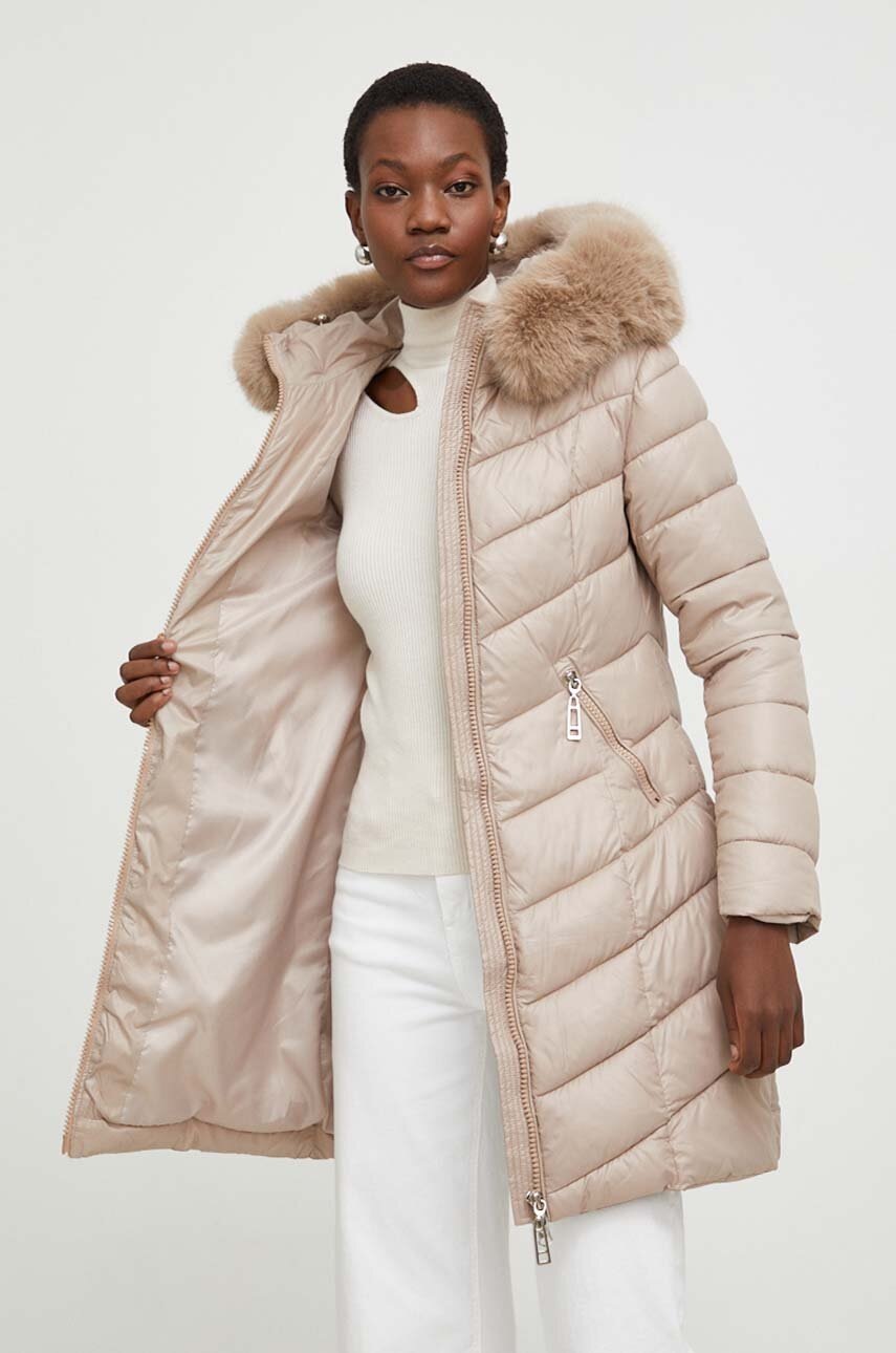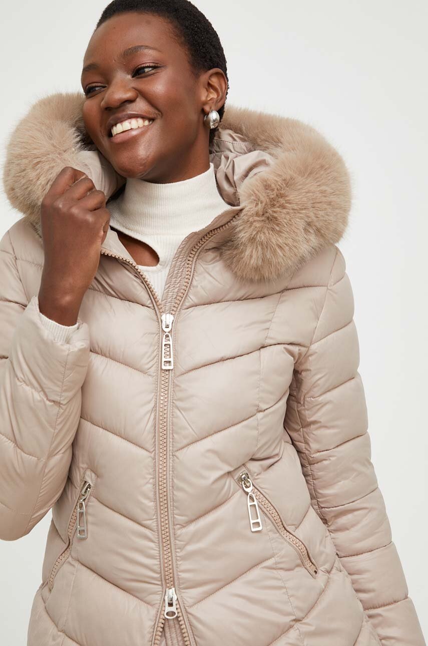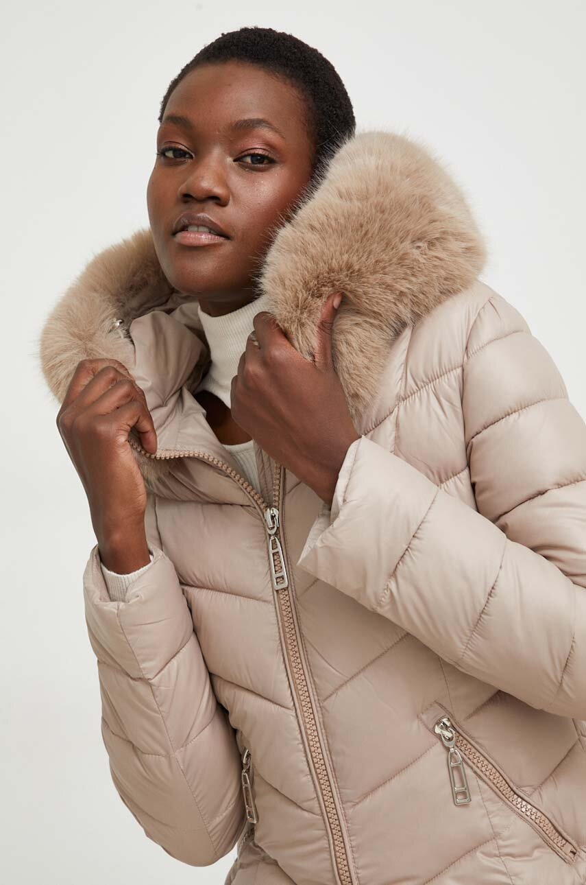 - Podwyższony kołnierz i nieodpinany kaptur gwarantują dodatkową ochronę przed chłodem.