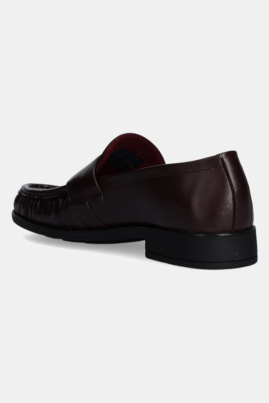 Tommy Hilfiger mokasyny skórzane LOAFER SOFT NAPPA PLEATED TOE damskie kolor bordowy na płaskim obcasie FW0FW08362