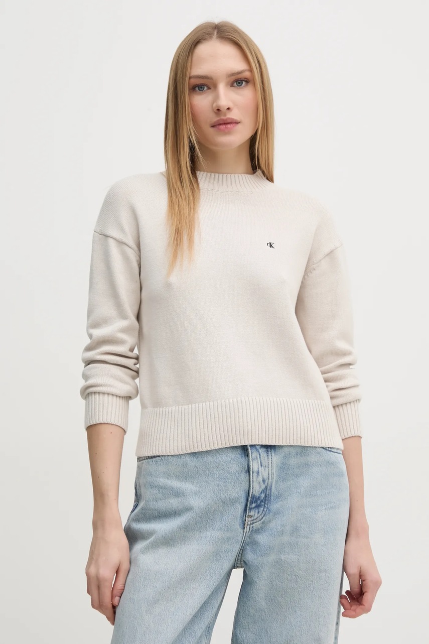 Calvin Klein Jeans sweter bawełniany kolor beżowy J20J224802