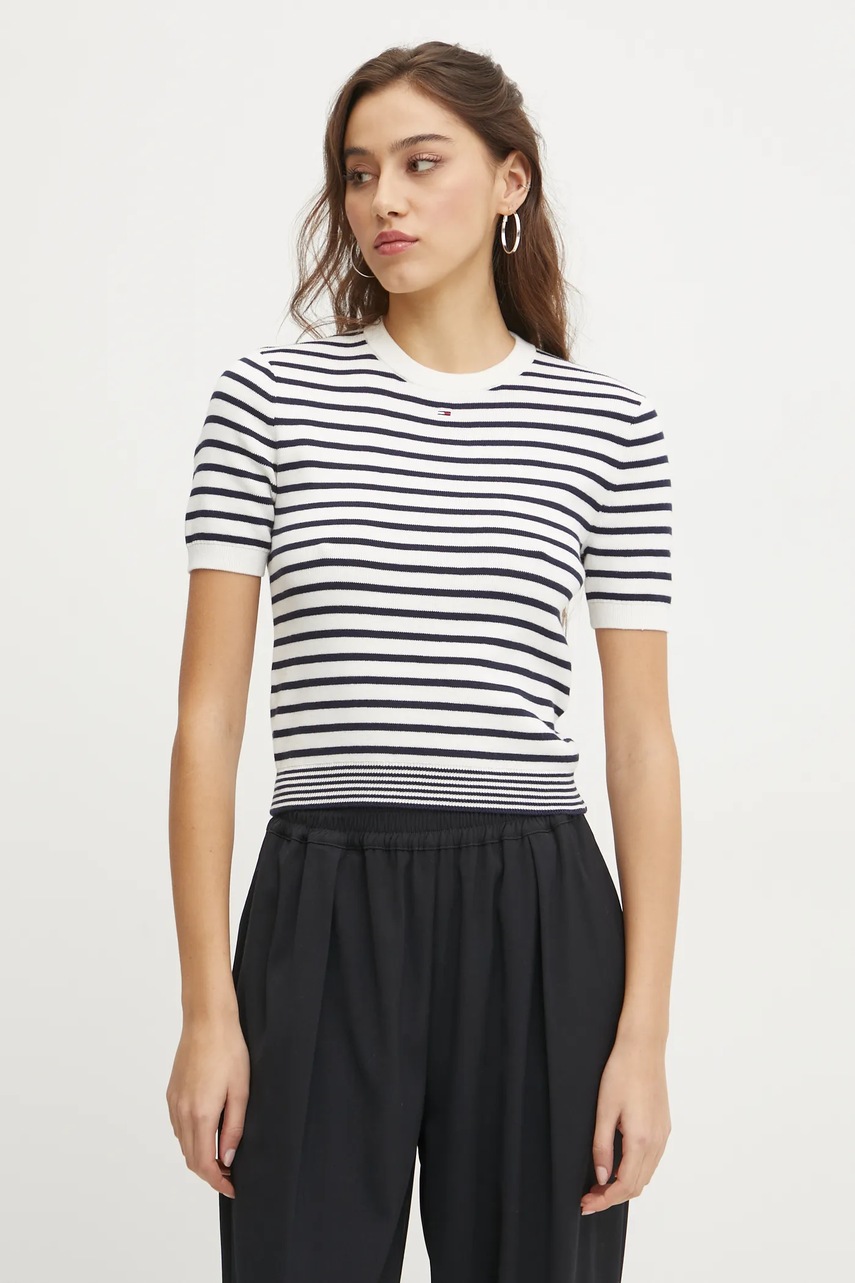 Tommy Jeans sweter bawełniany kolor biały lekki DW0DW19336