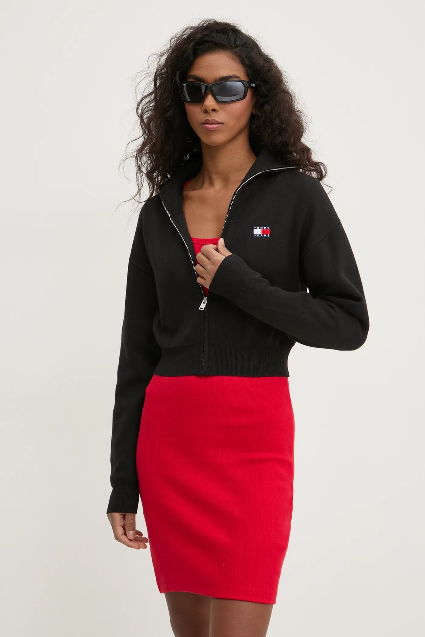 Tommy Jeans kardigan z domieszką wełny kolor czarny DW0DW19886