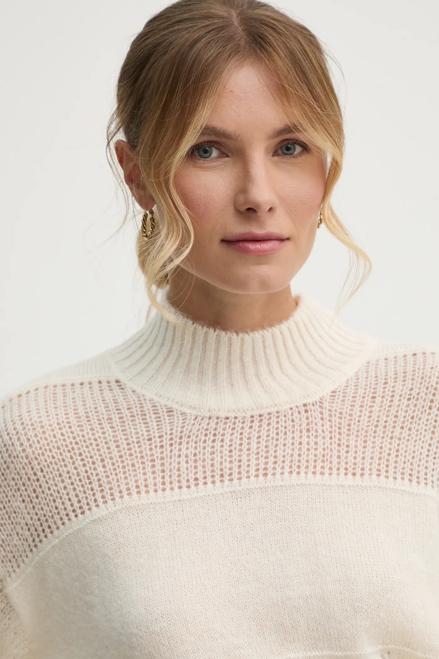Pepe Jeans sweter z domieszką wełny NAOMI damski kolor beżowy z półgolfem PL702243