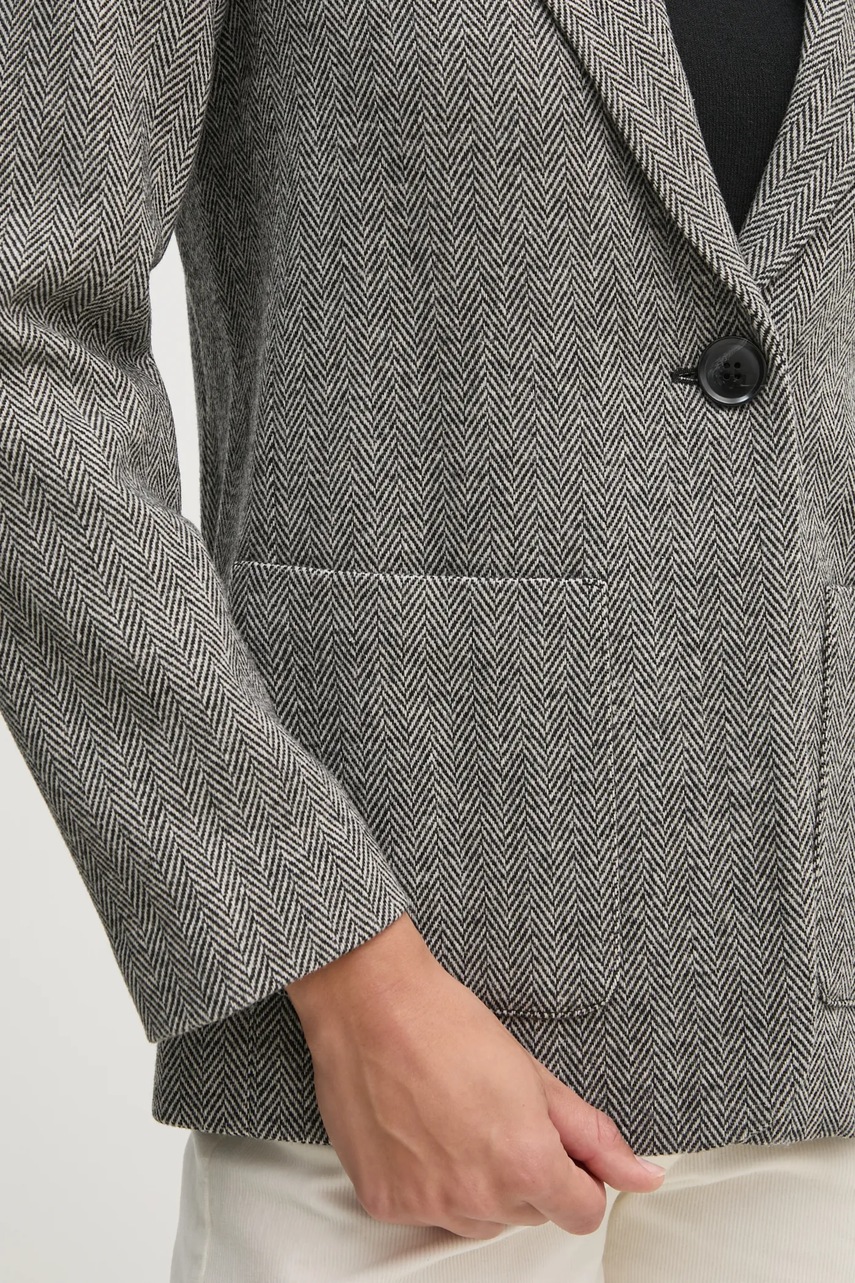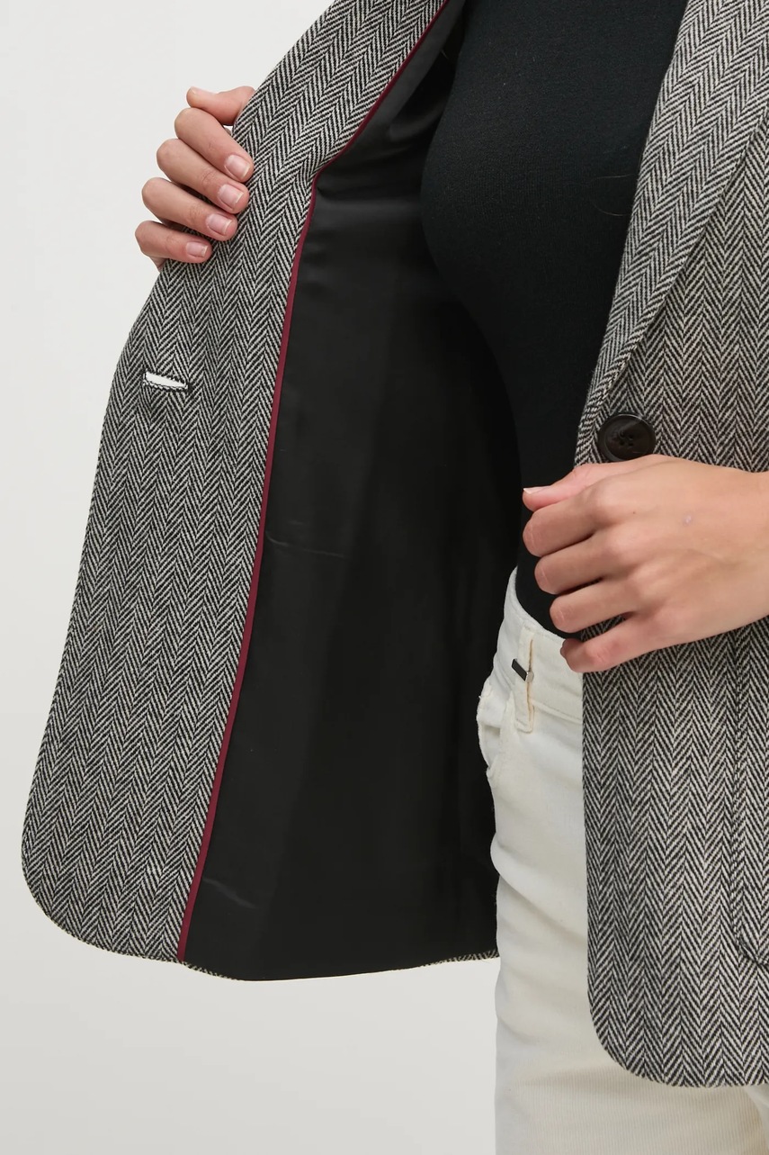 Sisley marynarka wełniana kolor szary jednorzędowa wzorzysta 25HDLW02K