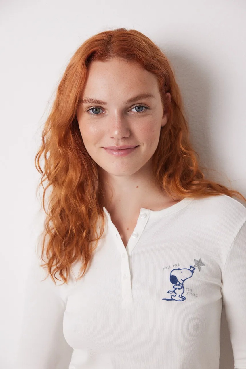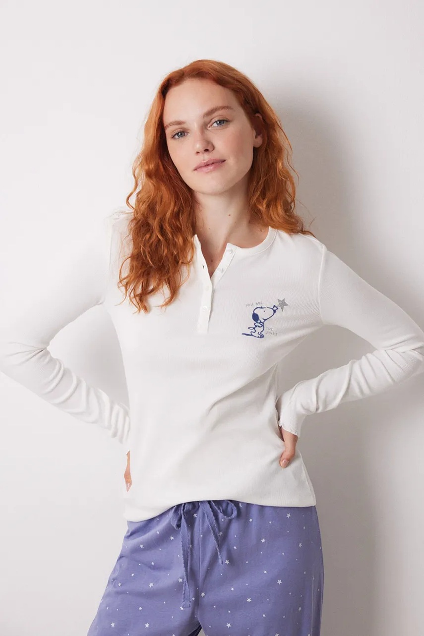 women'secret piżama bawełniana SNOOPY kolor beżowy bawełniana 3138589