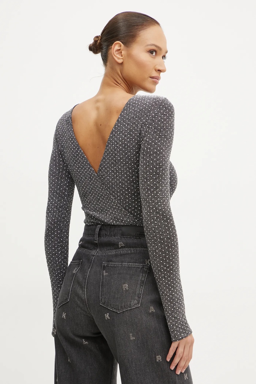 Karl Lagerfeld body damskie kolor srebrny wzorzysta A1W17083