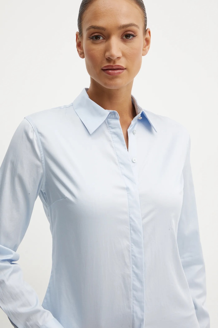 Guess koszula TIZIANA damska kolor niebieski regular z kołnierzykiem klasycznym W5RH31 WAF10