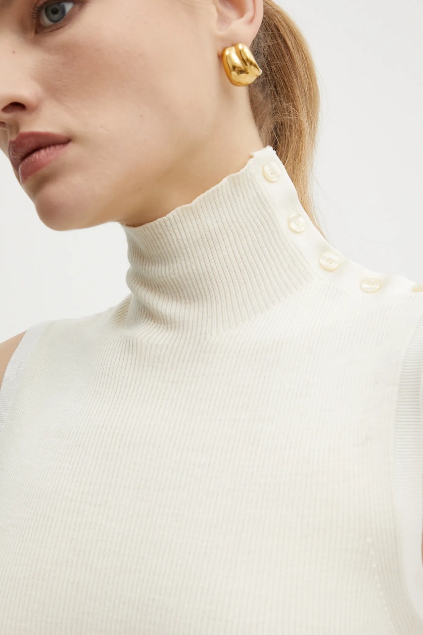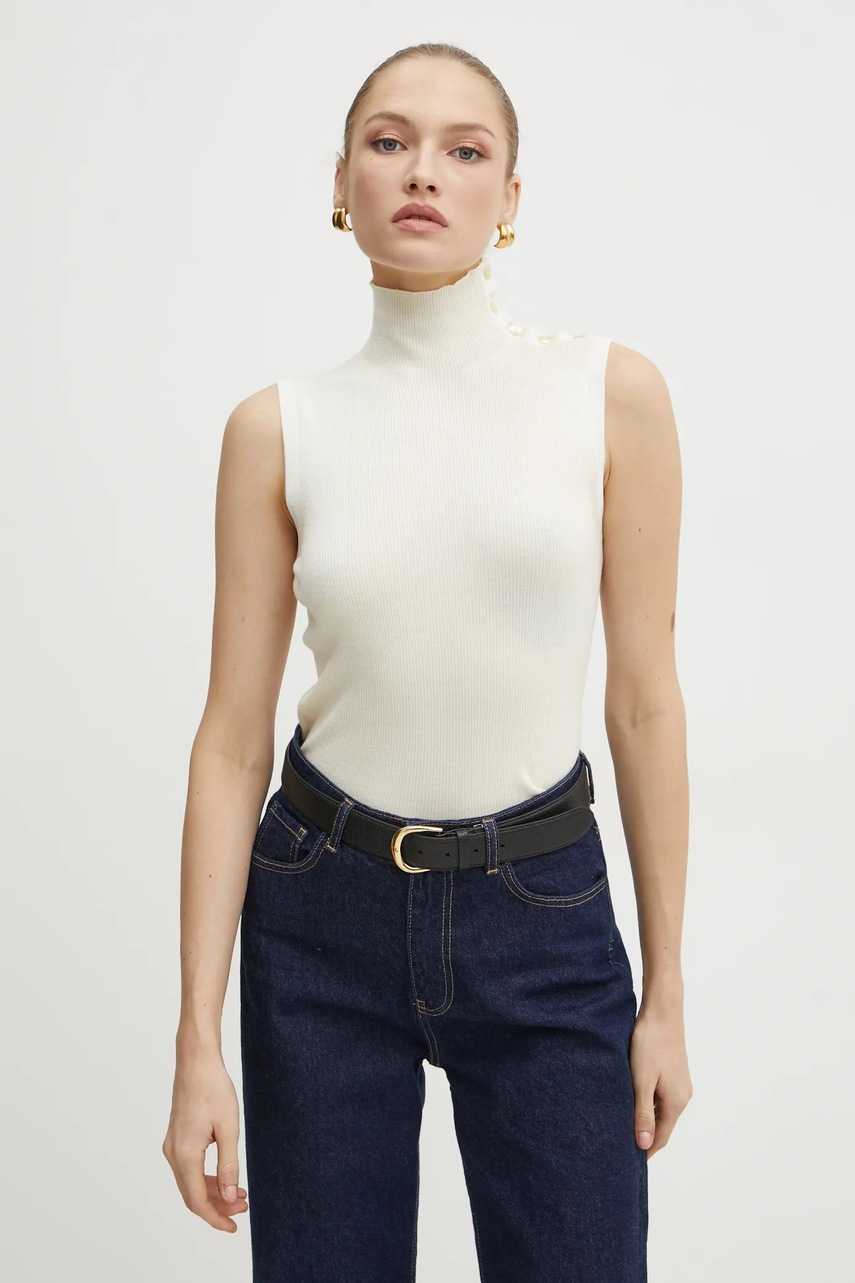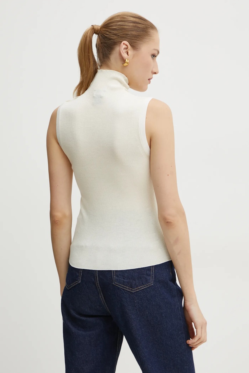 BOSS kamizelka wełniana kolor beżowy lekki z półgolfem 50530703