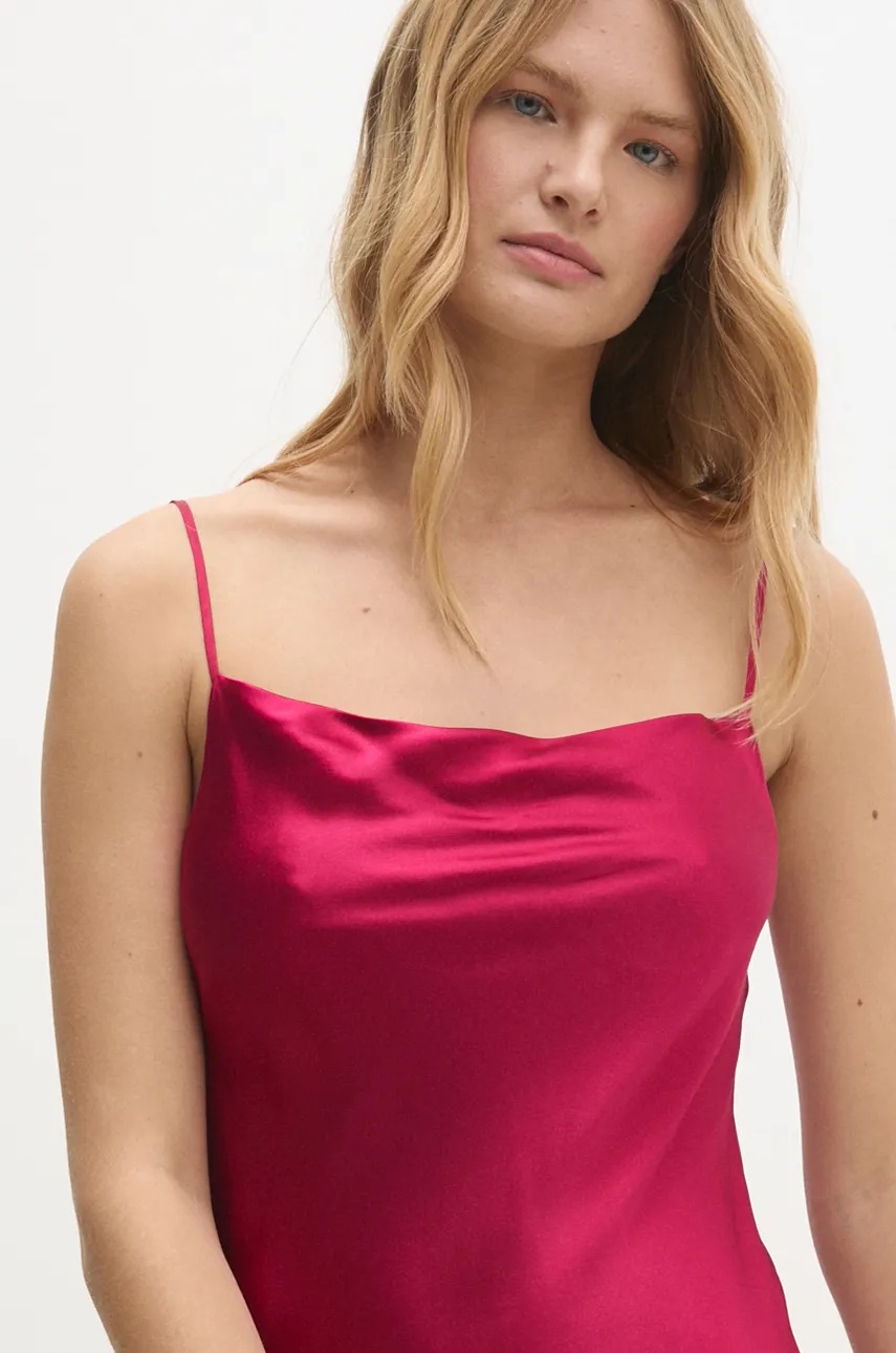 Answear Lab koszulka nocna jedwabna kolor czerwony satynowa