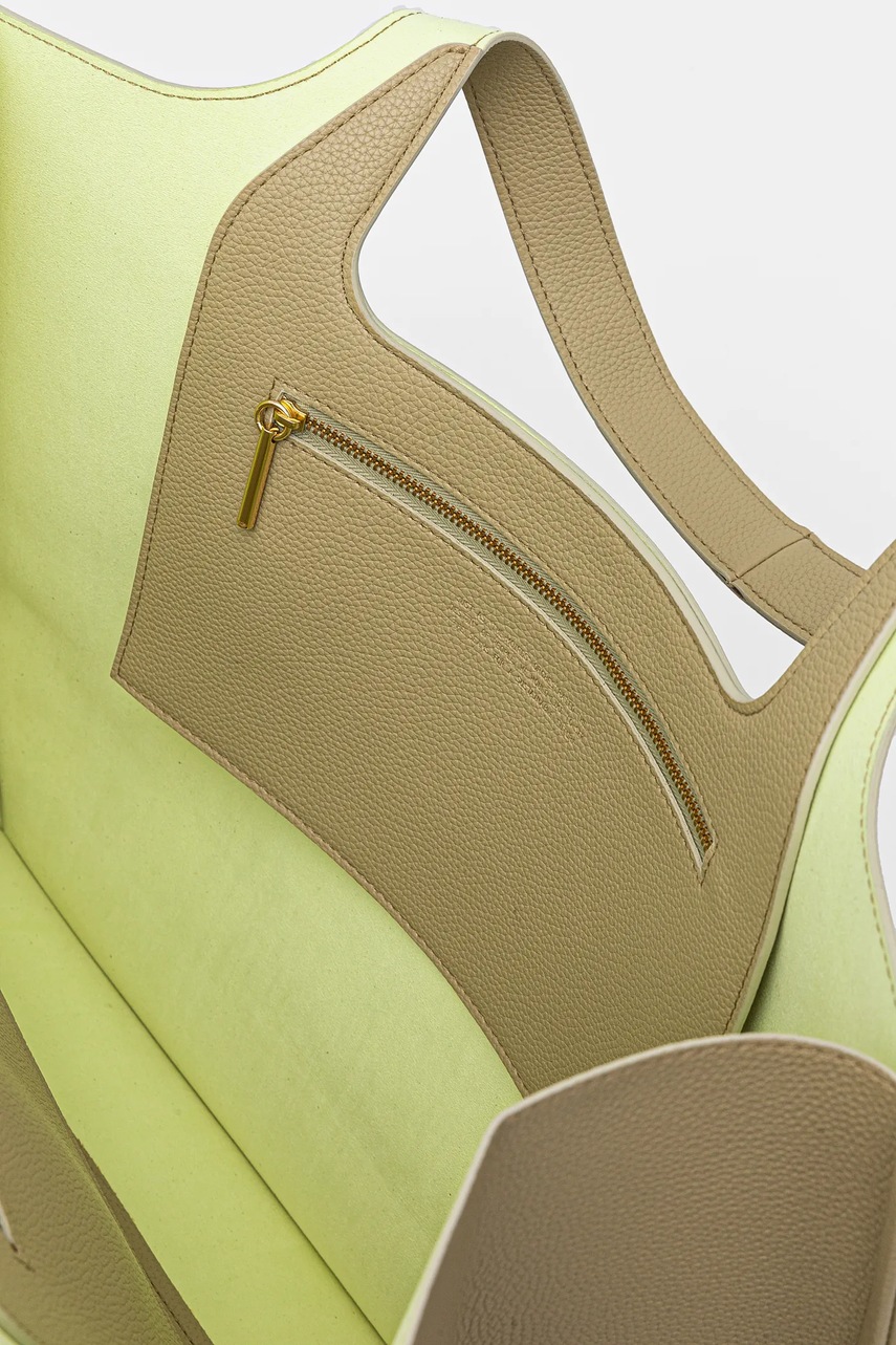 - Posiada dwie kieszenie wewenętrzne: jedna wsuwana, druga zapinana na suwak.