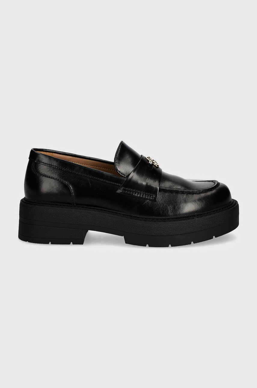 BOSS mokasyny skórzane Rebby damskie kolor czarny na platformie 50523590