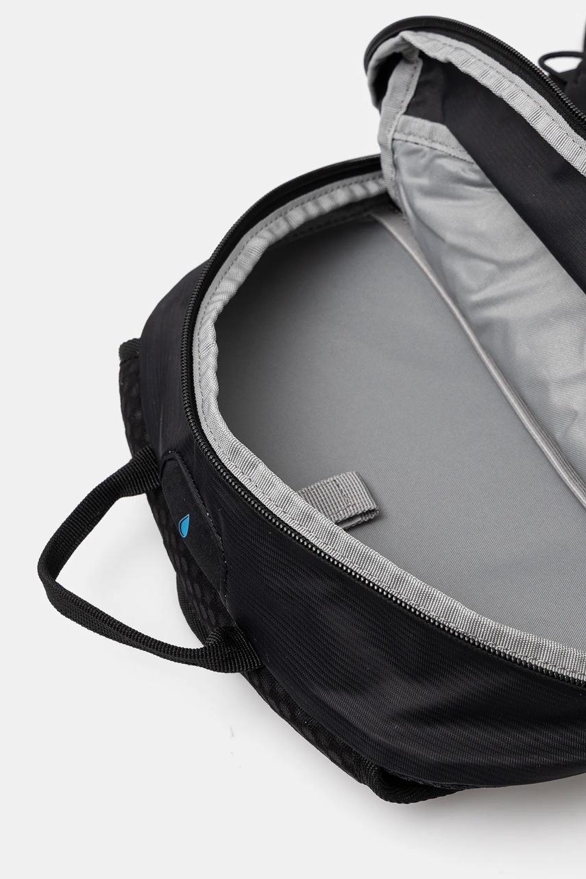- Wbudowany pas piersiowy z regulacją stabilizuje plecak i dba o prawidłowy rozkład ciężaru.