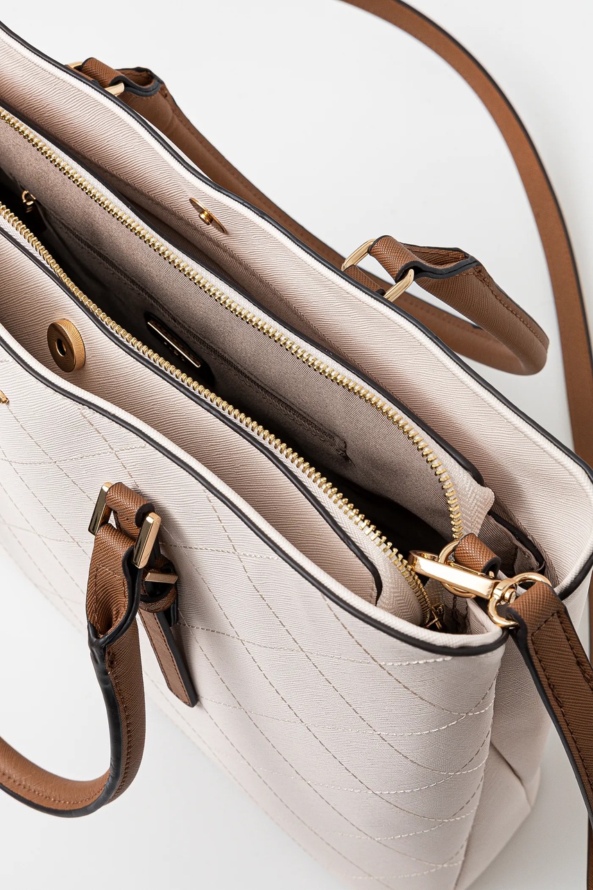- Trzy kieszonki wewnętrzne: jedna zapinana na suwak, dwie wsuwane.