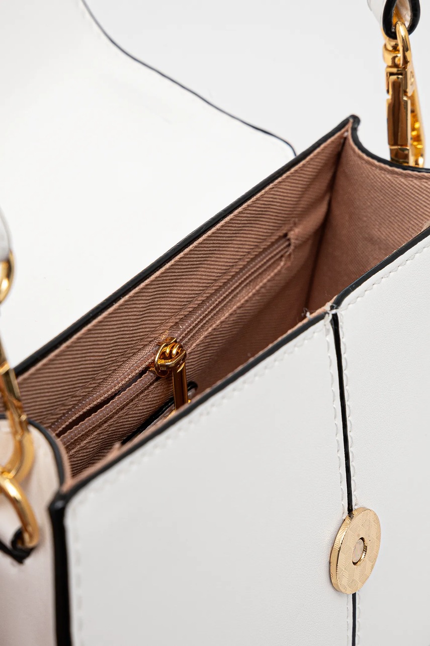 - Model wyposażony w metalowe nóżki, które zabezpieczają spód torebki.