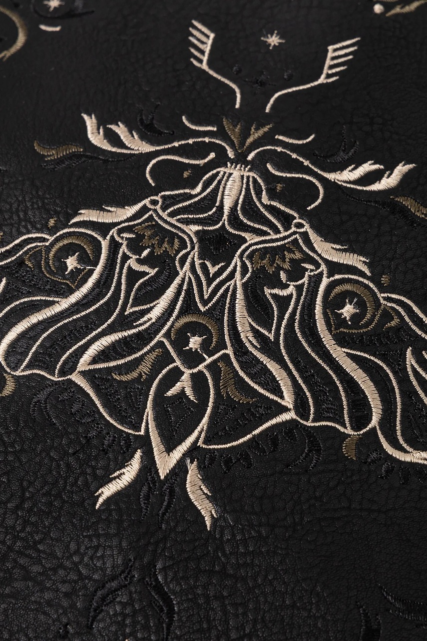 - Model z ozdobnym haftem z motywem zwierzęcym.