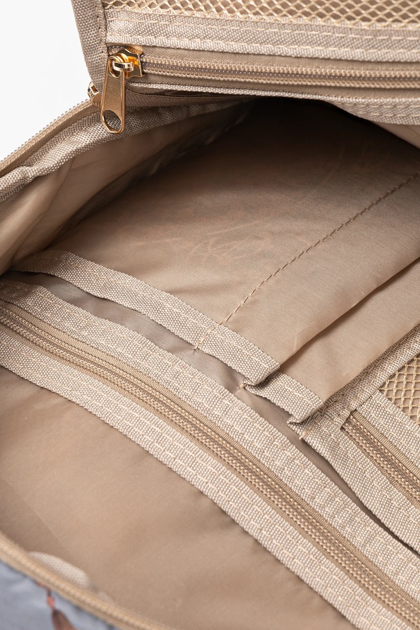 - Posiada trzy kieszenie wewnętrzne zapinane na suwak, w tym dwie z siateczki.