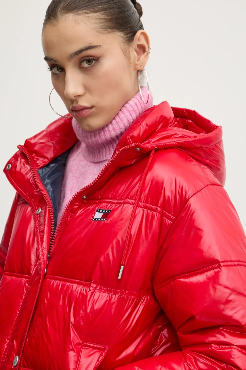 Tommy Jeans kurtka damska kolor czerwony zimowa oversize DW0DW20210