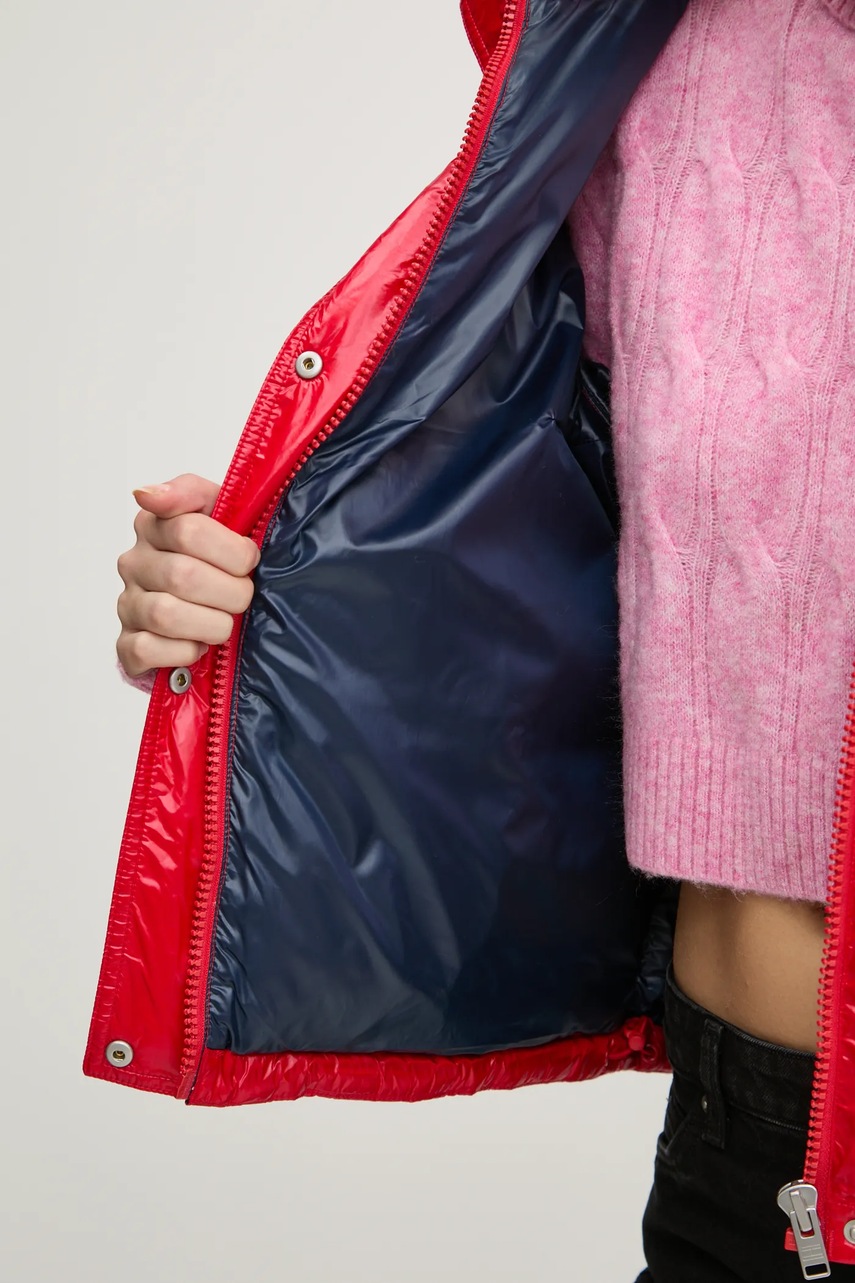 - Podwyższony kołnierz i nieodpinany kaptur gwarantują dodatkową ochronę przed chłodem.