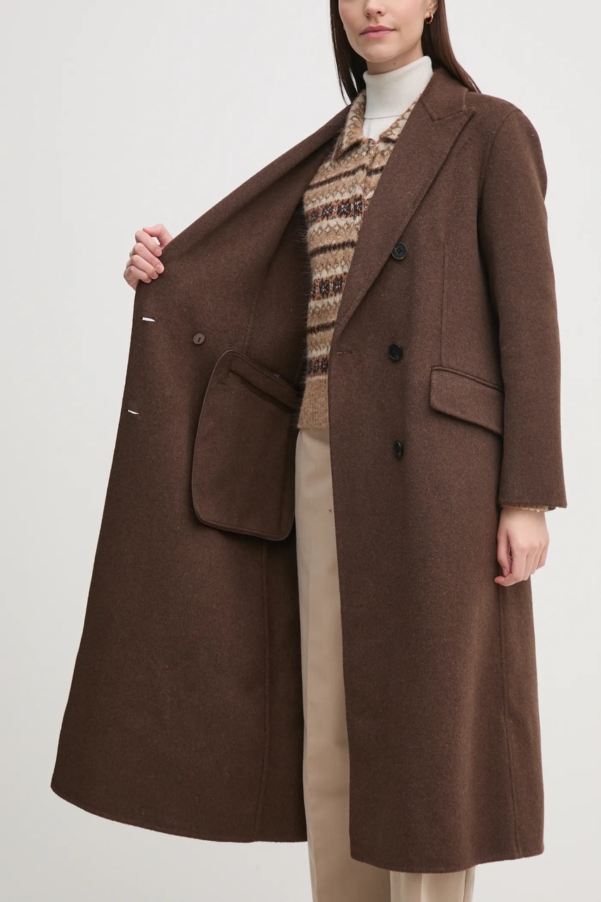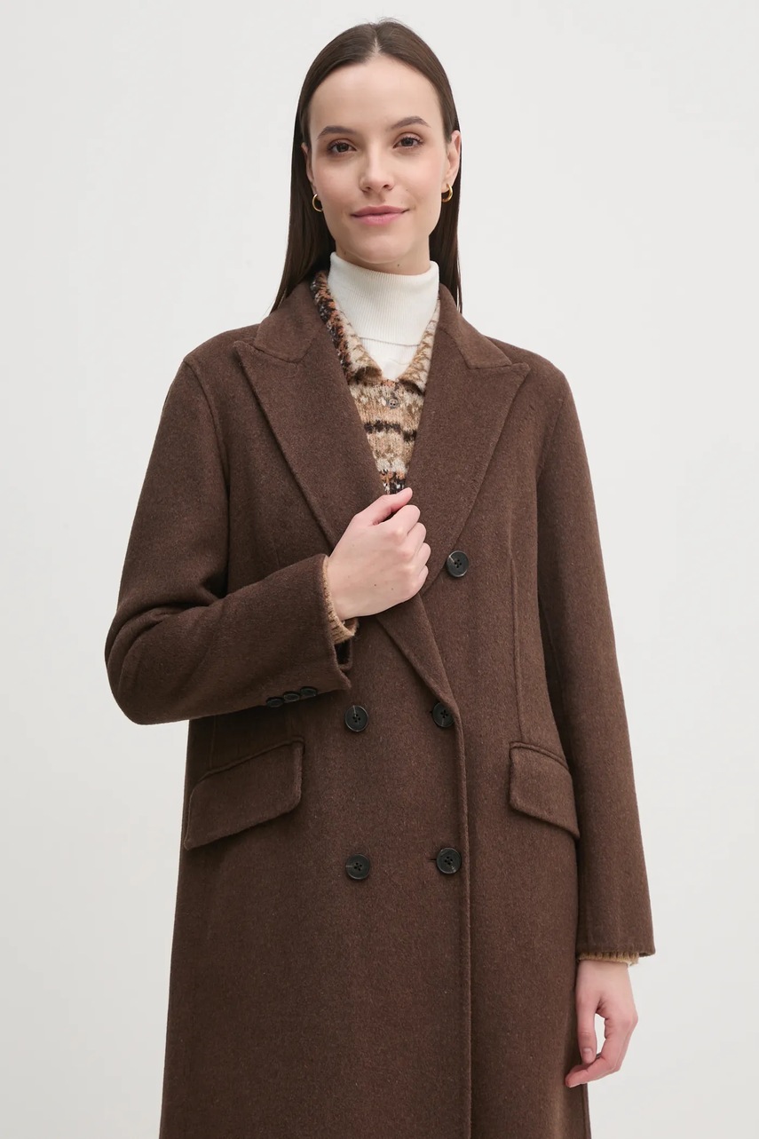 Pedro del Hierro płaszcz z domieszką wełny kolor brązowy przejściowy dwurzędowy 7528336