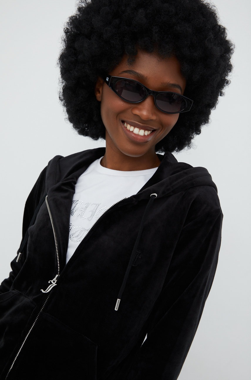 Juicy Couture bluza damska kolor czarny z kapturem gładka