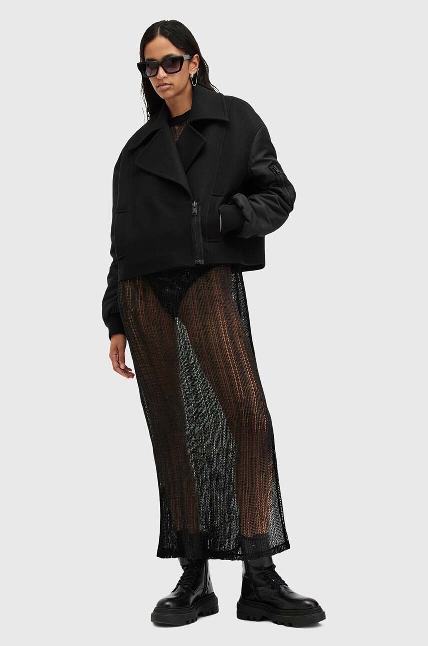 AllSaints kurtka wełniana ORLA kolor czarny przejściowa oversize W058OB