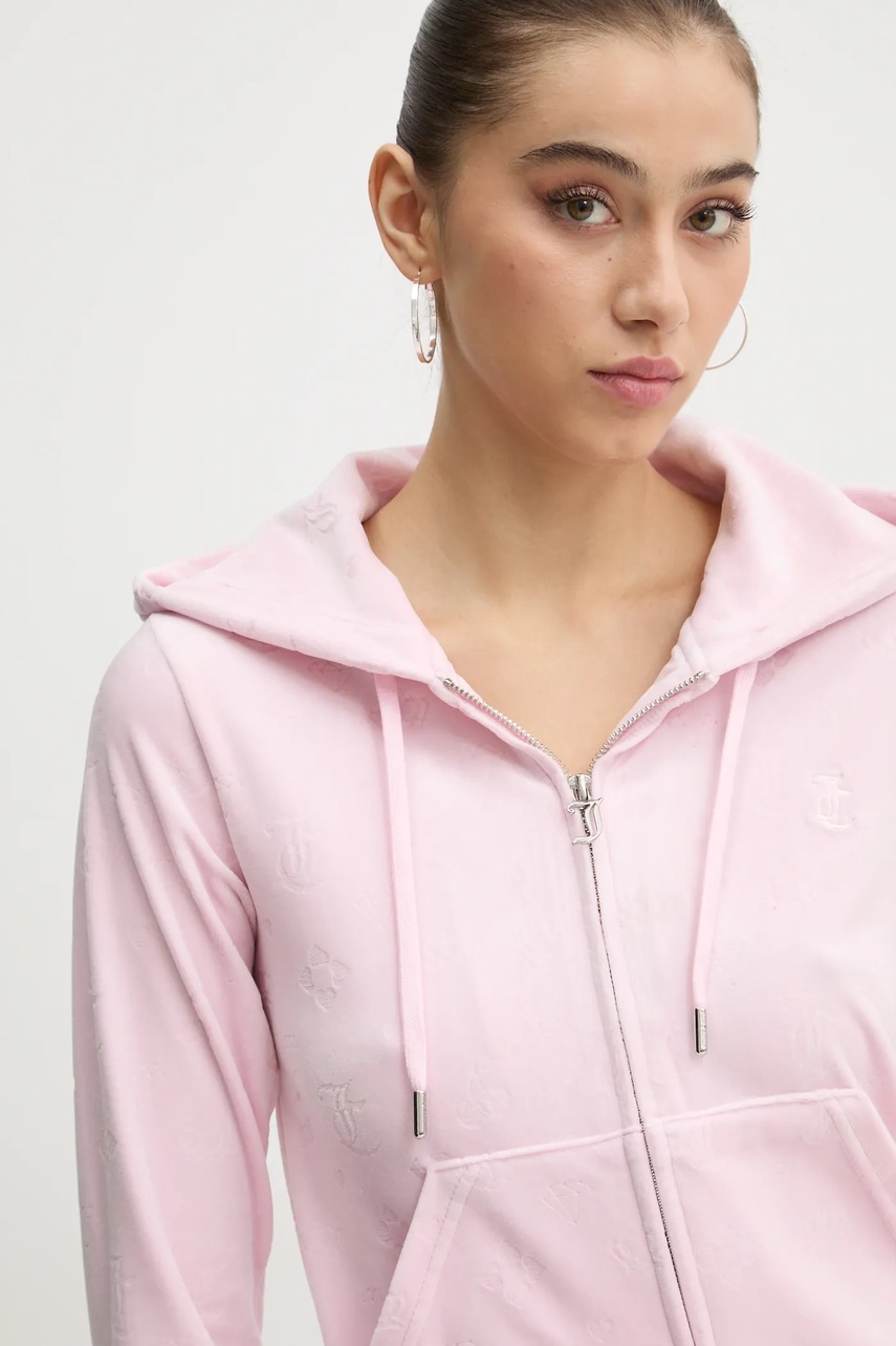 Juicy Couture bluza welurowa kolor różowy z kapturem wzorzysta JCWAS125302