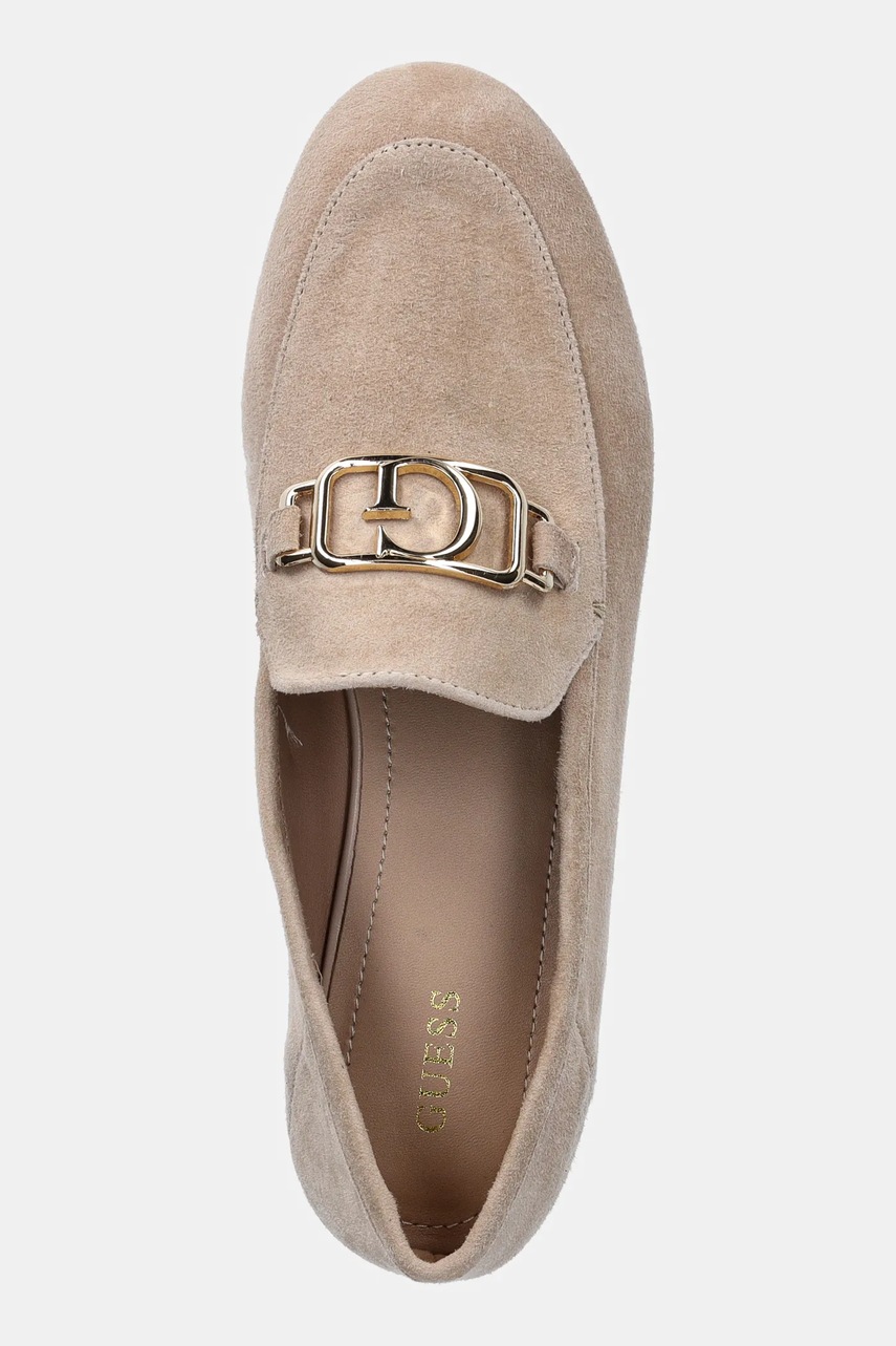 Guess mokasyny zamszowe MARTYNAS damskie kolor beżowy na płaskim obcasie FLPMAR SUE14