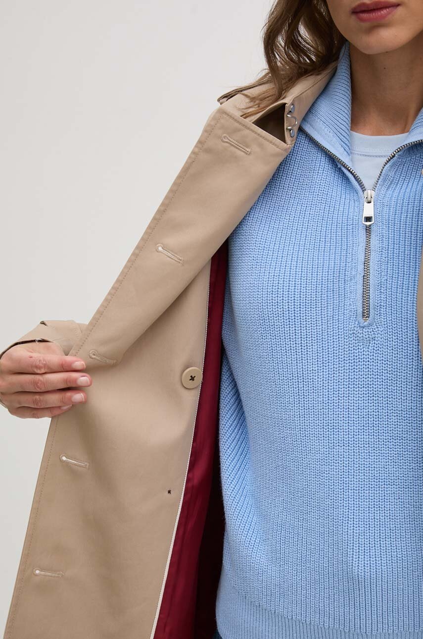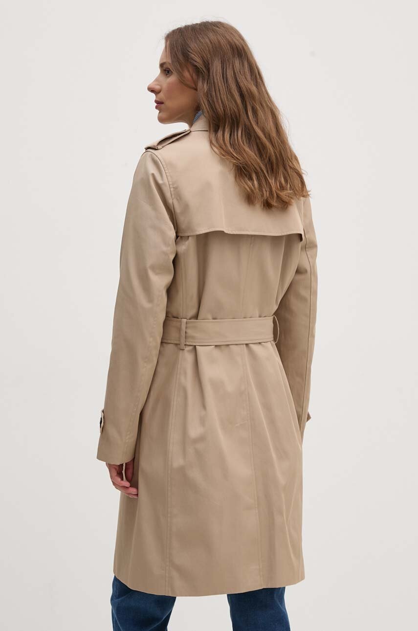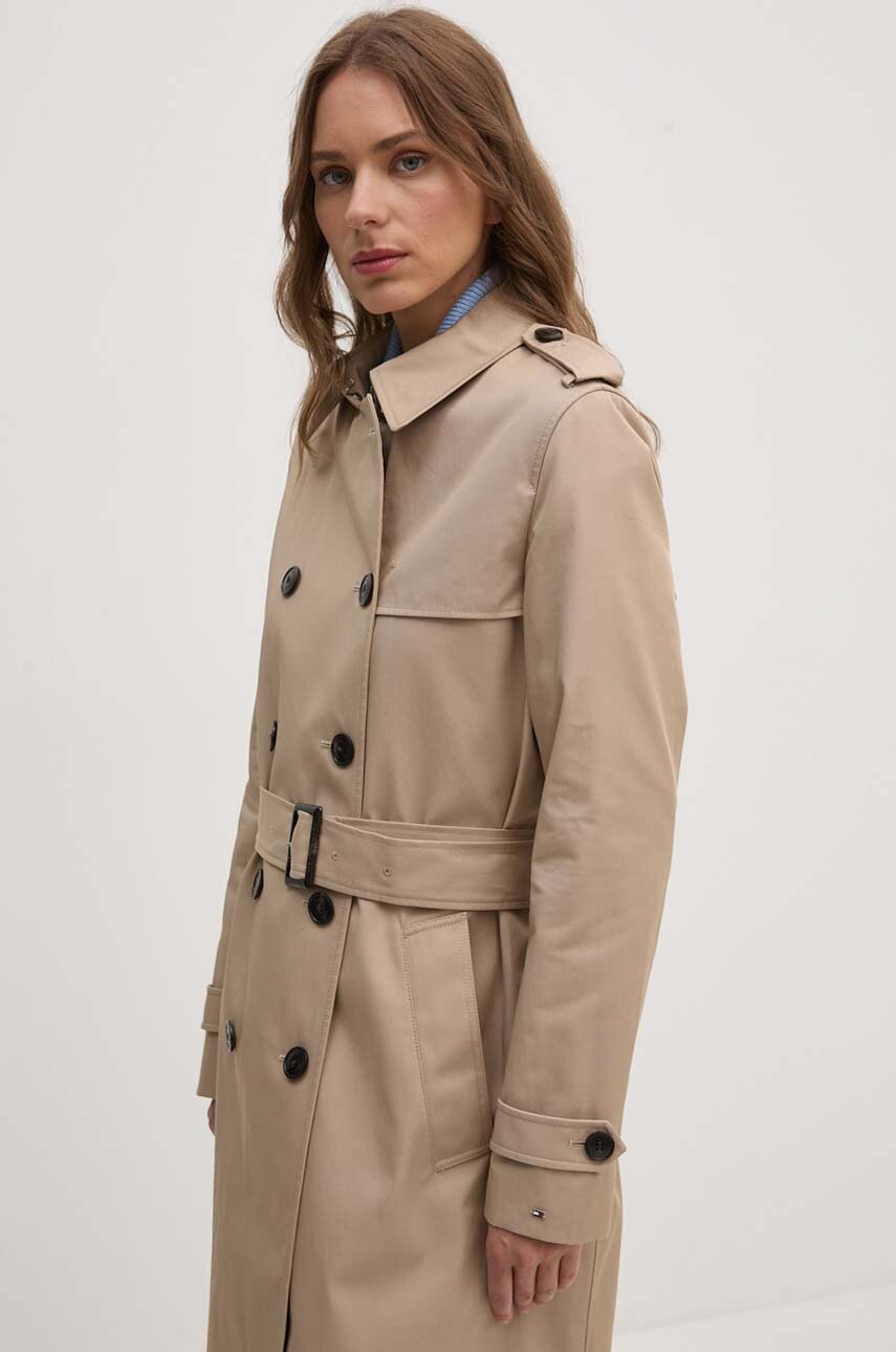 Tommy Hilfiger trencz damski kolor beżowy przejściowy dwurzędowy WW0WW42133