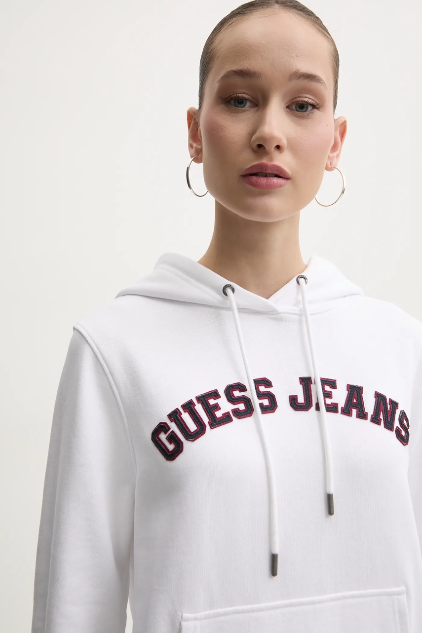 Guess Jeans bluza bawełniana damska kolor biały z kapturem z aplikacją W5RQ17 K68I4