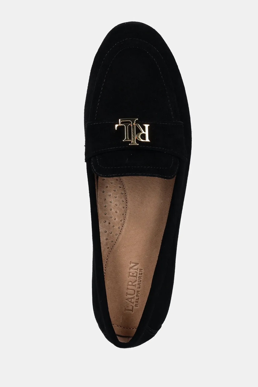 Lauren Ralph Lauren mokasyny zamszowe Averi III damskie kolor czarny na płaskim obcasie 802946809005
