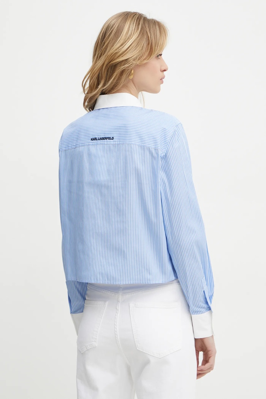 Karl Lagerfeld koszula bawełniana damska kolor niebieski regular z kołnierzykiem klasycznym A1W11037