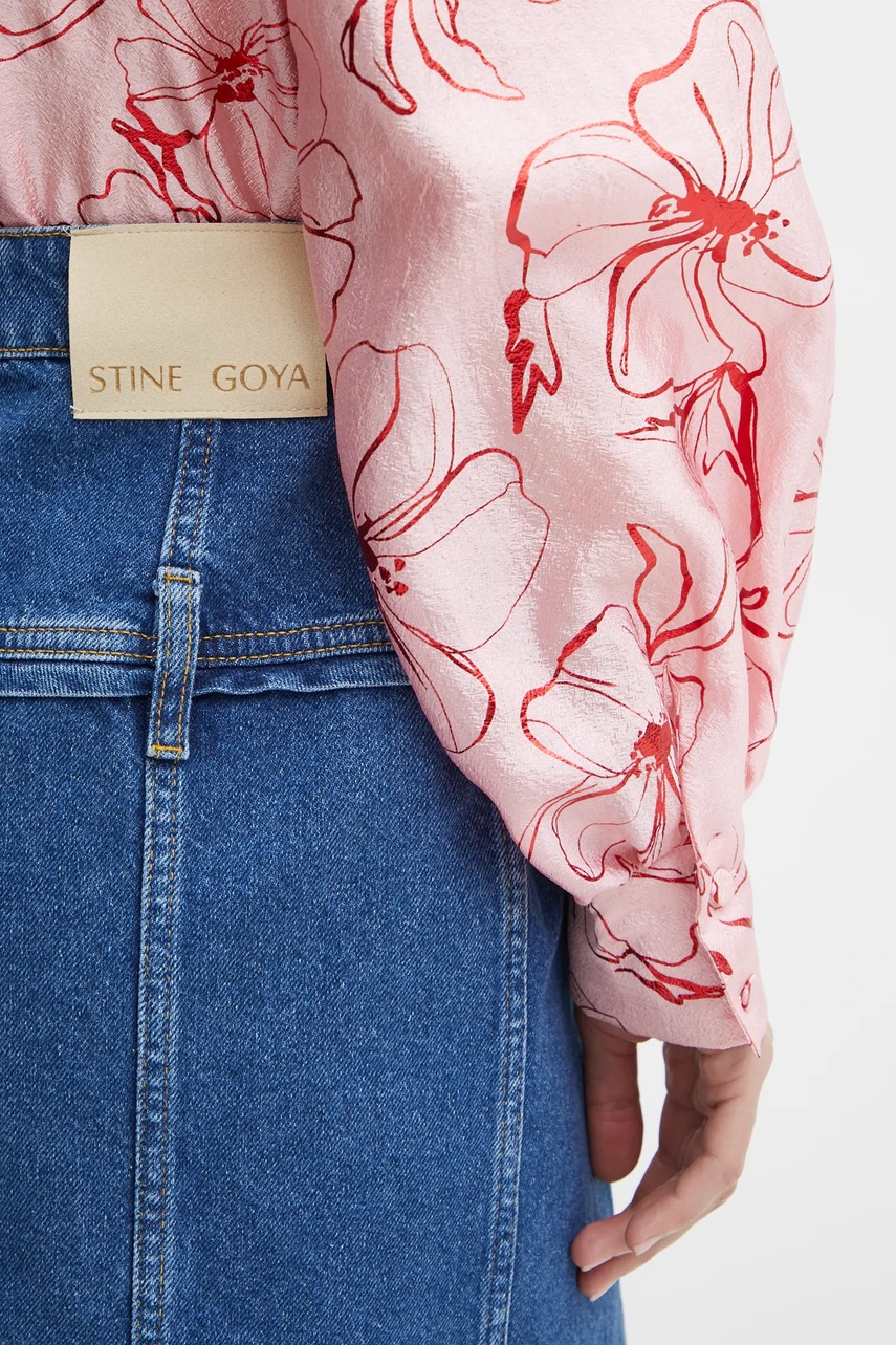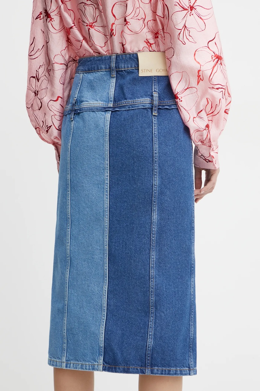 Stine Goya spódnica jeansowa kolor niebieski midi prosta SG-PS25-SK006-2301
