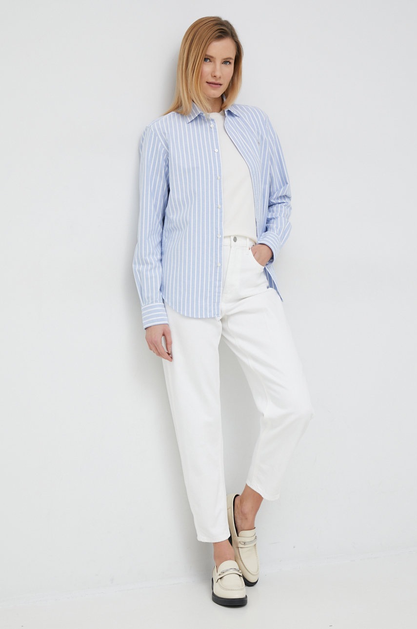 Polo Ralph Lauren koszula bawełniana damska kolor niebieski regular z kołnierzykiem klasycznym