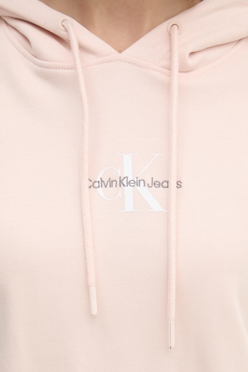 Calvin Klein Jeans bluza damska kolor różowy z kapturem gładka J20J225358