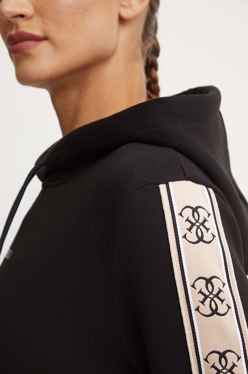 Guess bluza CARLA damska kolor czarny z kapturem z aplikacją V4YQ11 KB3P2