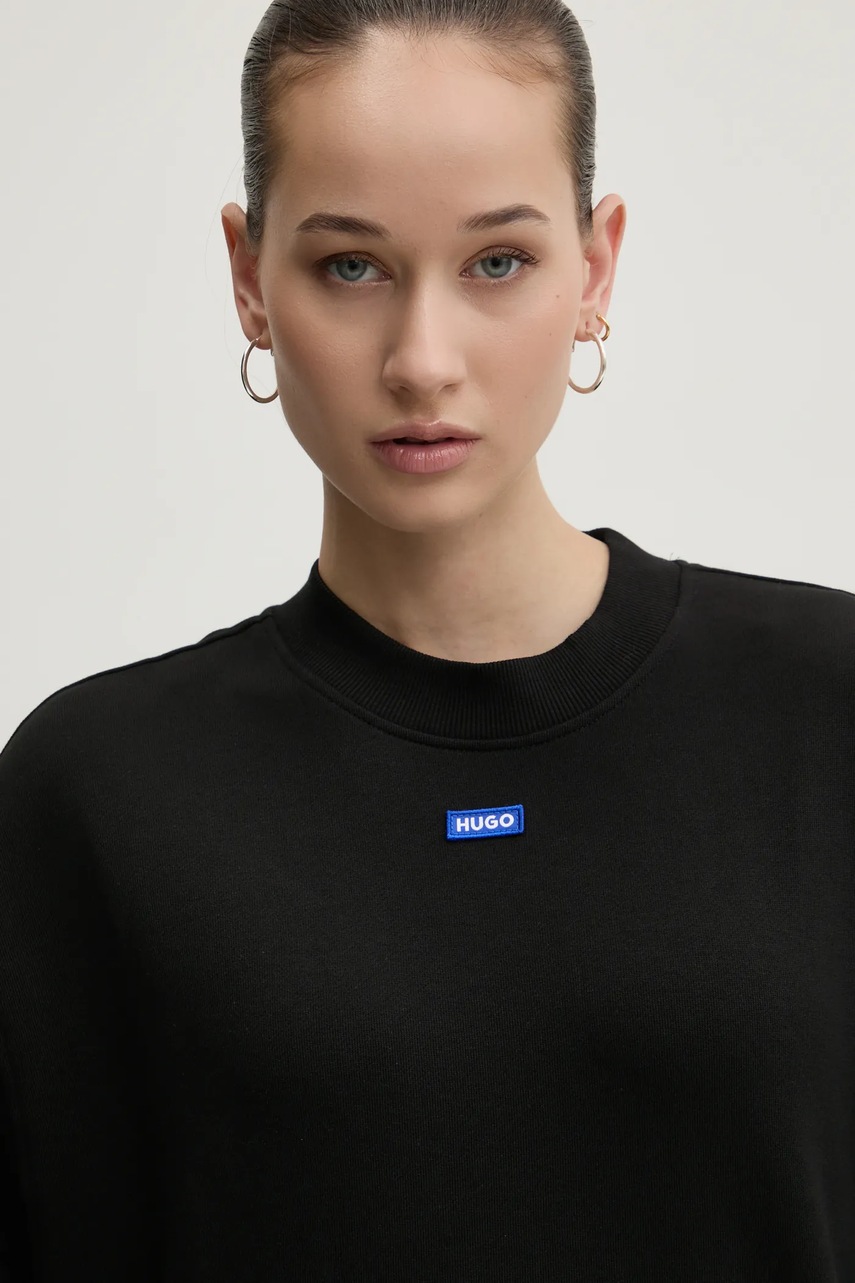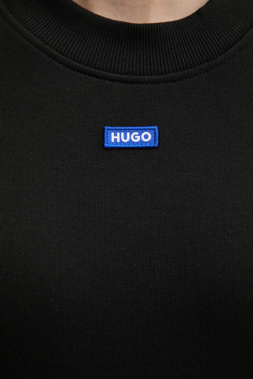 HUGO Blue bluza bawełniana damska kolor czarny z aplikacją 50534344