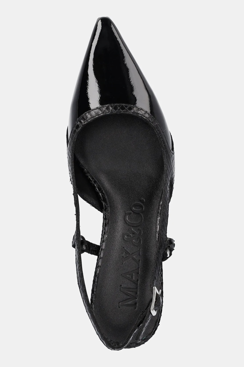 MAX&Co. czółenka skórzane kolor czarny na słupku z odkrytą piętą