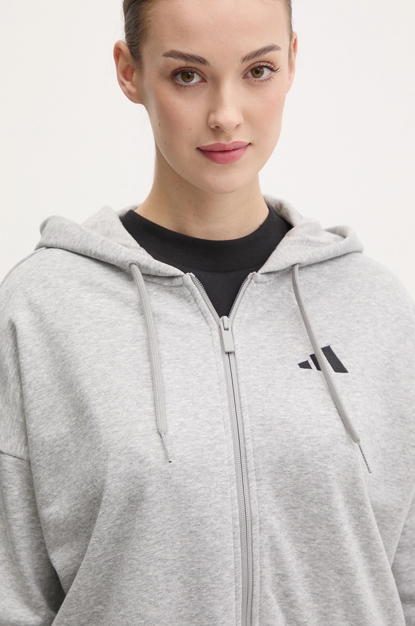 adidas bluza Essentials damska kolor szary z kapturem z aplikacją JE0055