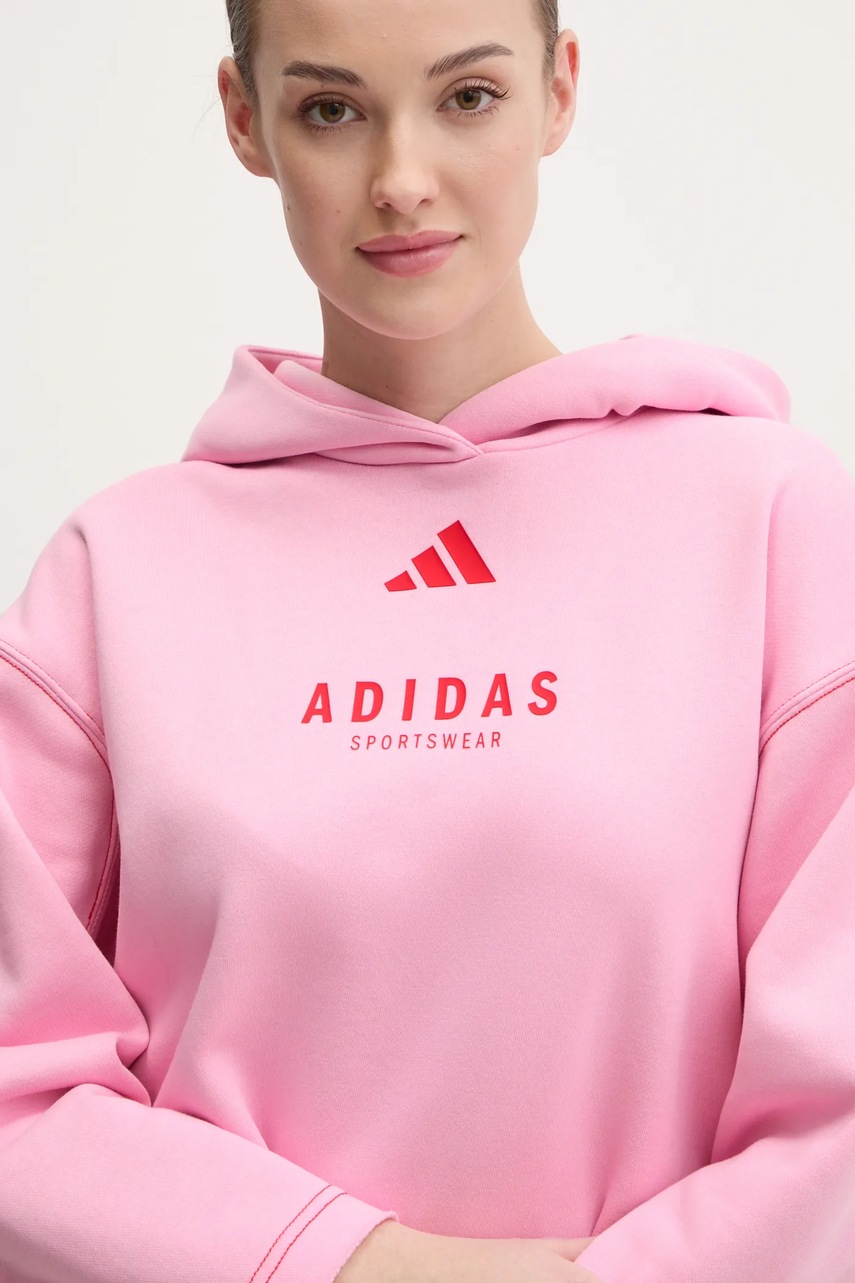 adidas bluza ALL SZN Graphic damska kolor różowy z kapturem z nadrukiem JJ4519