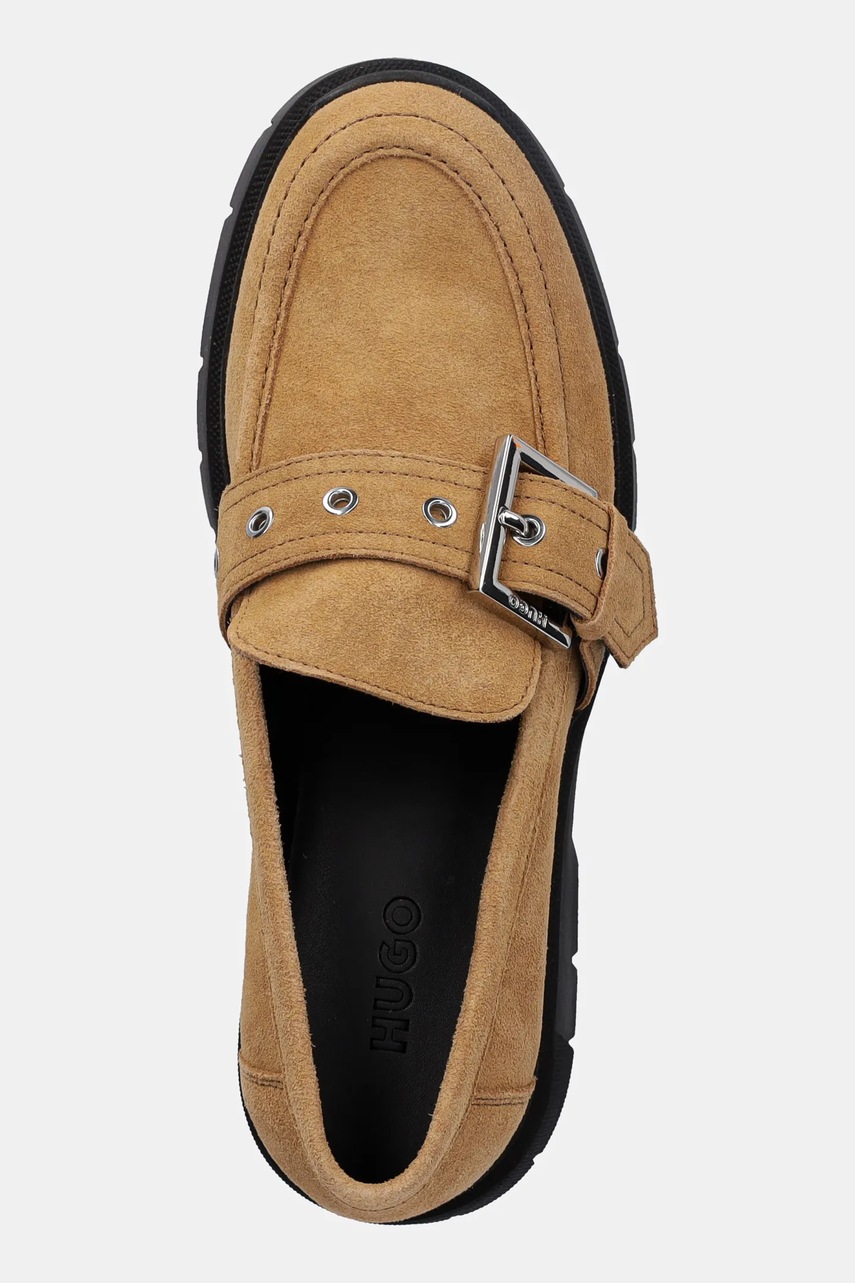 HUGO mokasyny zamszowe Kris damskie kolor brązowy na platformie 50541731